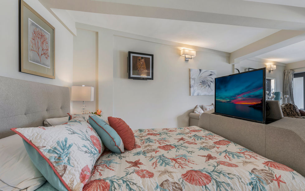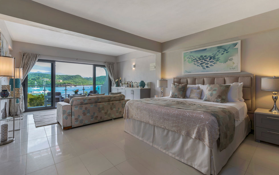 Contemporary styled, 4 bedroom villa with stunning vistas of Mount Hartman Bay. This villa is very contemporary, with white quartz floors and bathrooms. There are 2 master bedrooms with en-suite bathrooms (with tub) and imported king size beds, and 2 twin bedrooms with ensuite bathrooms and (imported twin sized beds which can be combined to make a regular king sized bed). Every room in this villa has floor to ceiling sliding or bi-fold doors with breathtaking views of the Bay which can be enjoyed from each bedroom's private balcony. There is a large open plan kitchen (with 2 dishwashers), opening onto a sitting room with a sit up bar and large laundry room. This house is fitted out with high end Miele appliances and every room has the newest LG air-conditioning system concealed behind works of art. In addition, this villa has a large infinity edge pool, Jacuzzi (hot tub) and large gazebo. This villa is set within its own 1 acre walled garden, it can be very private whilst still benefiting from the amenities and service of the Estate. The minimum stay for this villa is 14 nights.